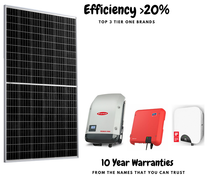 6.66kW Jinko High-efficiency 440W Panel or Longi 390W, paired with Huawei/SMA/Fronius Inverter.